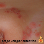 Rarely, diaper rash can be caused by a bacterial infection. This is also called impetigo. Certain types of bacteria (like staph and strep) can cause diaper rash or make an existing one worse. Bright red skin around the anus can be a clue to a strep infection. Yellow crusting, weeping, or pimples can be a clue to a staphylococcus or "staph" infection. Any infection in the diaper area needs to be confirmed and treated by your child's doctor.