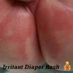 Irritant diaper rash looks like pink or red patches on the skin covered by the diaper. The groin folds are more protected from urine and stool, so this skin usually looks normal.