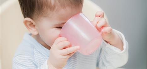 Start offering a cup to your child as early as 6 months. Bring one to the table with your child's plate and encourage them to give it a try. Begin by putting formula or breast milk in their cup—whatever they're drinking already. (This might feel more natural than starting with water.) As they get the hang of things, you can fill their cup with plain water at mealtimes, too.