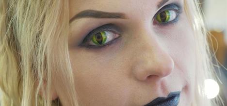 Decorative contact lenses change the look of your eyes. They may not correct your vision. They can temporarily change your brown eyes to blue or make your eyes look like cat eyes or vampire eyes for Halloween.