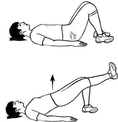 - Lift your buttocks 1 to 2 inches off the floor and hold this position.