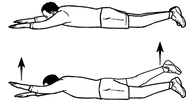 - Lift your left arm and right leg off the ground. Tighten your abdominal muscles before lifting arms and legs.