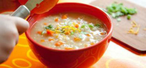 Congee is a thick Chinese soup made with rice, which sort of explodes as it cooks. Okay, it doesn't really explode, but it doesn't keep its rice-like shape and it kind of breaks apart. In China they eat it for breakfast, but we like it for lunch and dinner too. It can also be called jook.