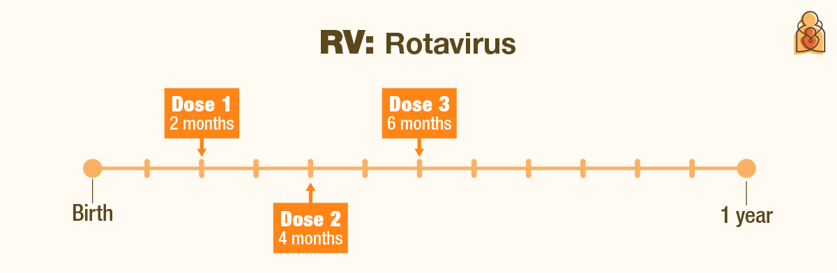 Rotavirus (RV) vaccine (2 or 3 doses) stops the main cause of diarrhea in children. This virus spreads very easily—on your hands, soiled diapers or toys, and through the air. Rotavirus infections cause severe, watery diarrhea, vomiting, fever and abdominal pain. Sometimes the virus causes children to become so dehydrated that they need hospital care.