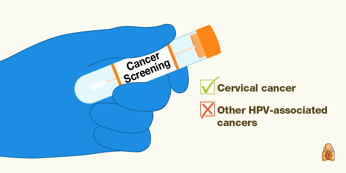 Only cervical cancer can be detected early with a screening test. The other HPV-associated cancers may not be found until years later, when they are much more serious. There are no scree​ning tests to find most cancers from HPV.​