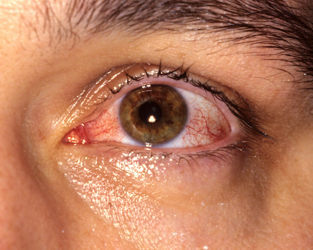 • Red eye is caused by mild irritant (such as soap, sunscreen, food, smoke, chlorine)
