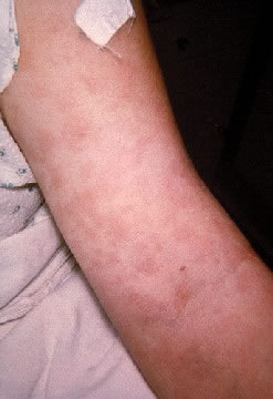 This patient had a widespread rash from an allergy to penicillin. The picture shows the arm.