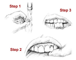• Rinse off the tooth with saliva or water (do not scrub it).