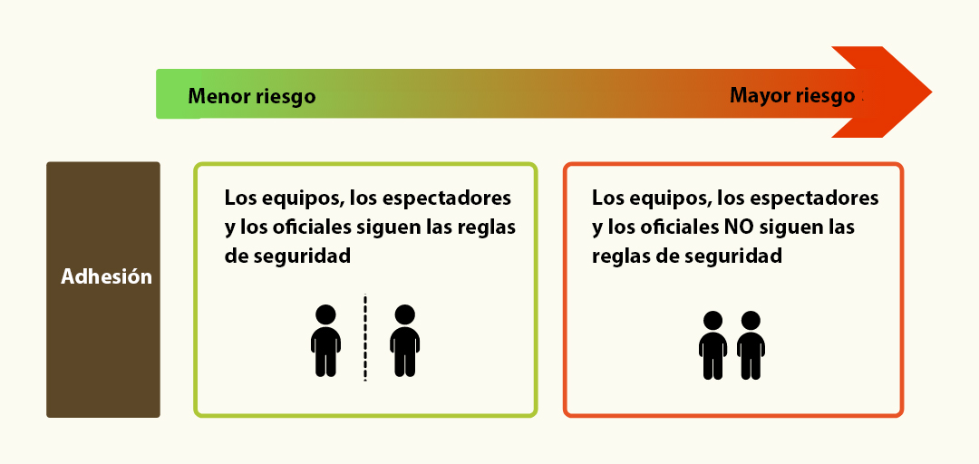 Con el fin de crear entornos seguros para todos, nuevos procedimientos de seguridad deben ser establecidos para las prácticas y los juegos. ¡Los padres, los atletas, entrenadores y oficiales necesitan trabajar juntos para ayudar a mantener a todos sanos y seguros cumpliendo con las recomendaciones! Cuando las personas no toman estas precauciones, puede poner en riesgo a todo el equipo. Así que recuerde ser un buen compañero de equipo y aficionado cumpliendo con estas nuevas reglas de seguridad. Para más información, consulte Deportes juveniles: chequeos previos para volver a la actividad física durante el COVID-19.