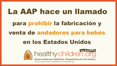 La AAP ha pedido que se prohíba la fabricación y venta de andadores con ruedas para bebés. Los andadores para bebés ya están prohibidos en Canadá. Según la Ley de seguridad de productos de consumo de Canadá, los canadienses no pueden fabricar, importar, publicitar ni vender andadores para bebés.