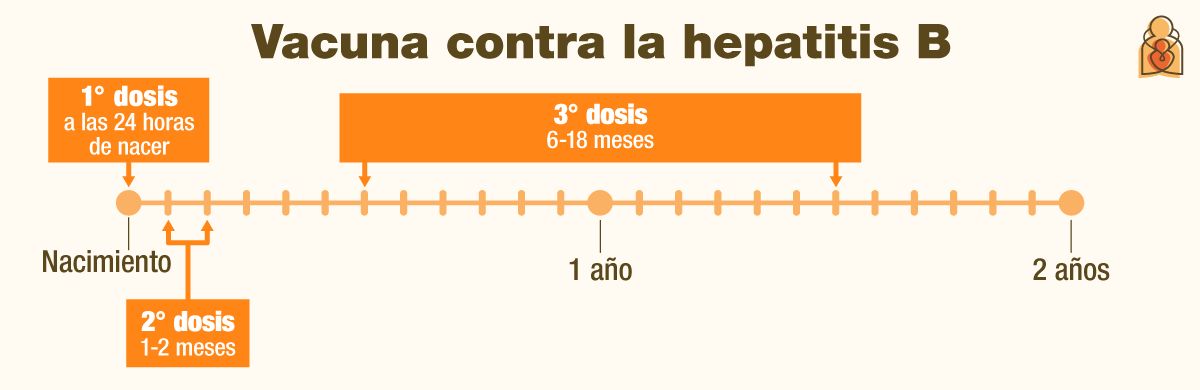 hepatitis B es la primera vacuna que reciben la mayoría de los bebés. Se da dentro de un plazo de 24 horas desde el nacimiento. Su bebé recibirá la segunda dosis de la vacuna contra la hepatitis B cuando tenga 1 o 2 meses y la tercera dosis cuando tenga entre 6 y 18 meses.