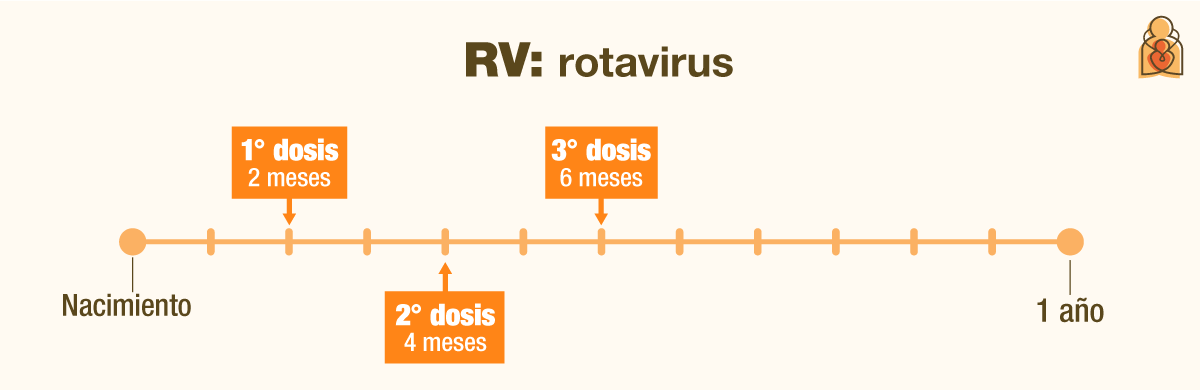 La vacuna contra el rotavirus (2 o 3 dosis) previene la principal causa de diarrea en los niños. Este virus se propaga muy fácilmente: a través de las manos, de los pañales o juguetes sucios y a través del aire. Las infecciones de rotavirus causan diarrea acuosa intensa, vómitos, fiebre y dolor abdominal. A veces el virus hace que los niños se deshidraten tanto que necesitan ser hospitalizados.