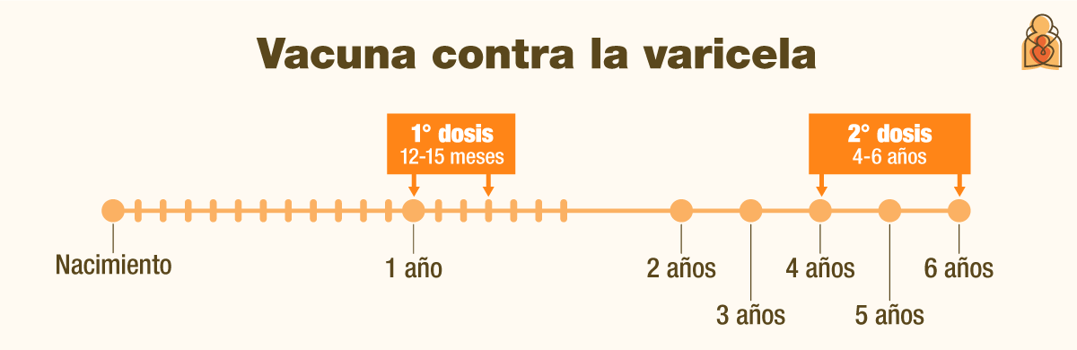La vacuna contra la varicela (dos dosis) previene la varicela, que solía infectar a 4 millones de personas en los Estados Unidos cada año. De esas personas, más de 10,000 eran hospitalizadas y más de 100 morían. Un caso leve puede hacer que un niño falte a la escuela por una semana o más. Por lo general, la vacuna MMR y la vacuna contra la varicela se administran por separado para la primera dosis. La vacuna MMRV puede usarse para la primera dosis si los padres expresan una preferencia.